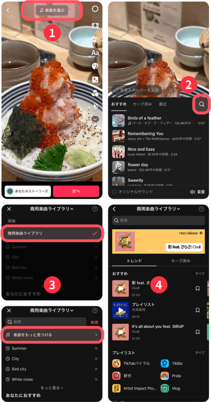 どのSNSでも、そのSNS内でのみの利用を推奨しています。そのため、他SNSで商用利用可能な楽曲を使いたい場合は、そのSNS内で楽曲を探すようにしましょう。